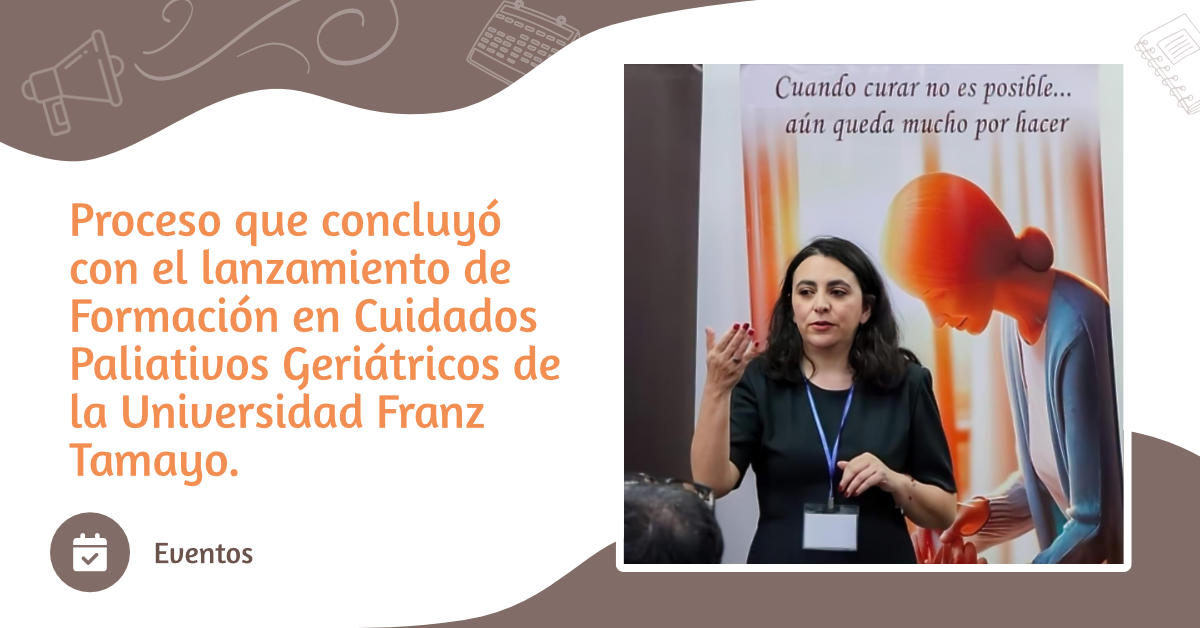 representantes del Ministerio de Salud, de la Universidad Mayor de San Andrés, de la Universidad Franz Tamayo y de la Asociación Boliviana de Cuidados Paliativos. Esta invitación también ha sido extendida al área de derechos de los adultos mayores del ministerio de justicia y a la defensoría del pueblo.