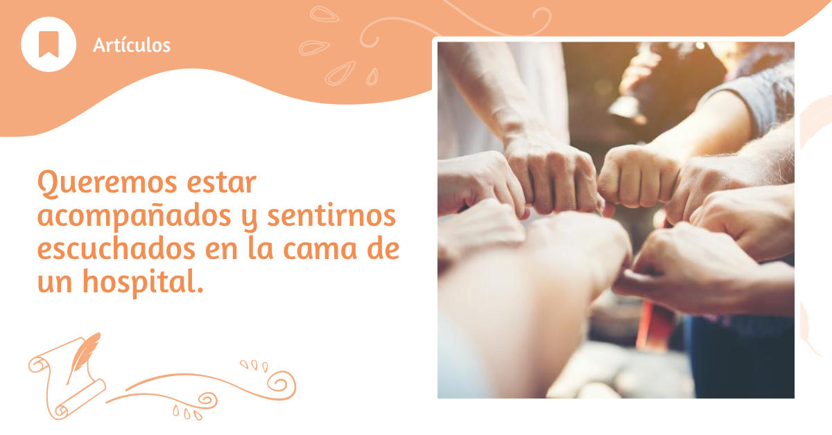 Queremos estar acompañados y sentirnos escuchados en la cama de un hospital o en la silla de un consultorio Que las personas dejemos de ser llamadas por el número de una cama o por la enfermedad. Que dejemos de percibir a los centros de salud como lugares amenazantes y se conviertan en lugares hospitalarios, donde podamos sentir la seguridad que sólo la confianza nos otorga.